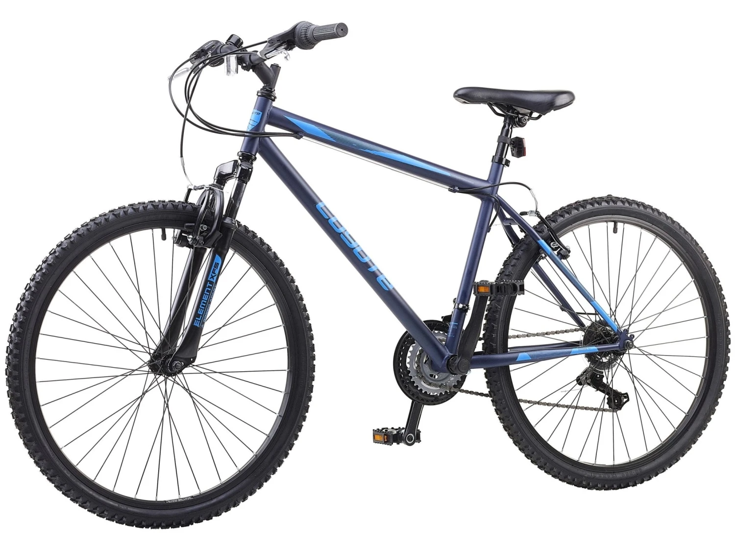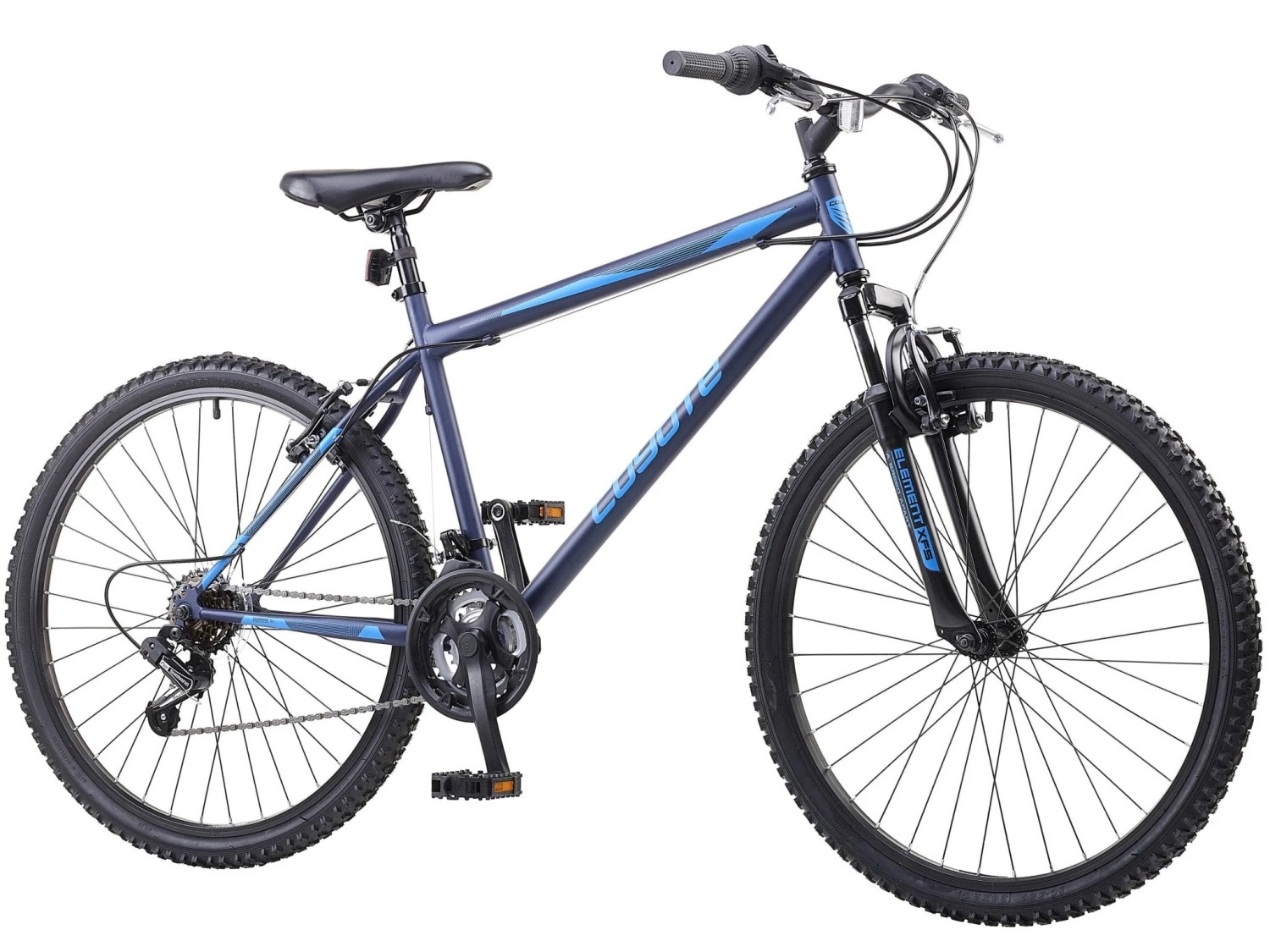 The Element XFS is built around a high tensile steel frame making it both strong and responsive so perfect for weekend jaunts or taking on the trails. Other features include lightweight Alloy rims and a powerful V type brake system with lightweight alloy levers, chunky wide mountain bike tyres and a comfort padded saddle. The Element XFS also features 18 speed Sunrun gearing with mega range feature to minimize the impact of steep hills. Rock solid specification at an affordable price. New for 2020, updated frame geometry. Better clearance to allow tyres to spin freely, decreasing the risk of dirt clogging up. We have reduced the head angle for a more predictable/stable ride. Steeper seat tube angle makes climbing easier and pedalling more efficient. Longer front centre increases stability, longer wheelbase increases comfort and inspires confidence in descents.