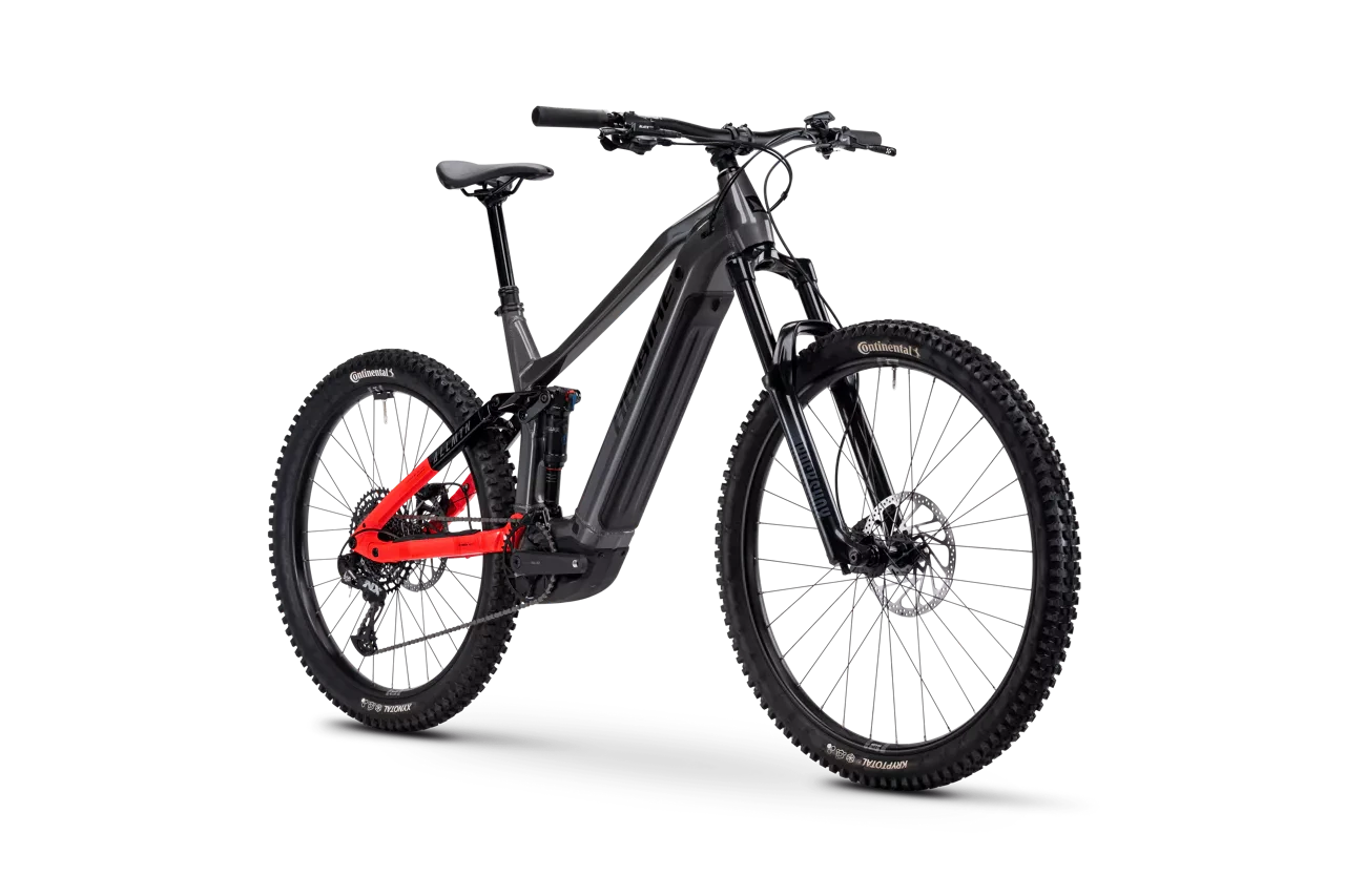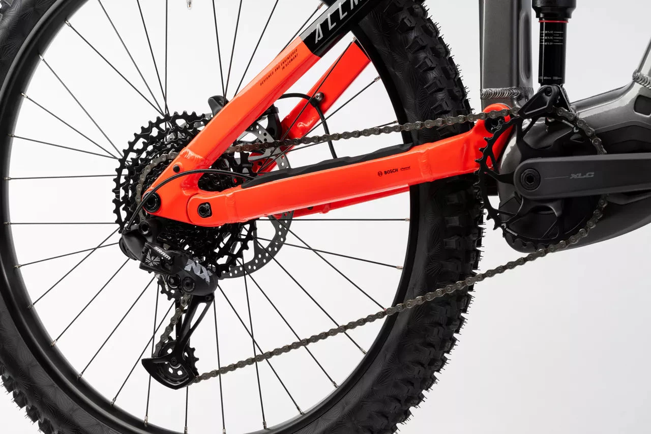 Summit thrills and valley fun in one ride. Our new ALLMTN 4 is bursting with fun, even when you’re aiming high. We’ve equipped this full-suspension all-mountain eMTB with a newly-developed aluminium frame, offering the perfect blend of weight savings, comfort and stiffness thanks to its unique design. The finely tuned component mix complements the experience: with the powerful Bosch Performance CX motor and 800Wh battery, plus an optional Range Extender, you can enjoy limitless long mountain tours. With 160mm front and 150mm rear travel, the descents are pure fun, and the Sram components ensure you’re always in the right gear. In short, this is the ideal eMTB for those looking to experience the perfect mix of summit thrills and valley fun.