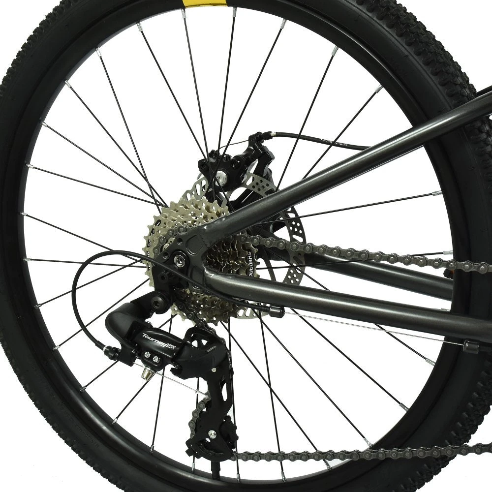 The Shimano 8-speed drivetrain, paired with a 32T chainring and 11-32T cassette, provides smooth shifting and the right range of gears for tackling climbs and picking up speed on descents. Powerful 160mm disc brakes deliver reliable stopping power in all conditions, giving riders the control they need.