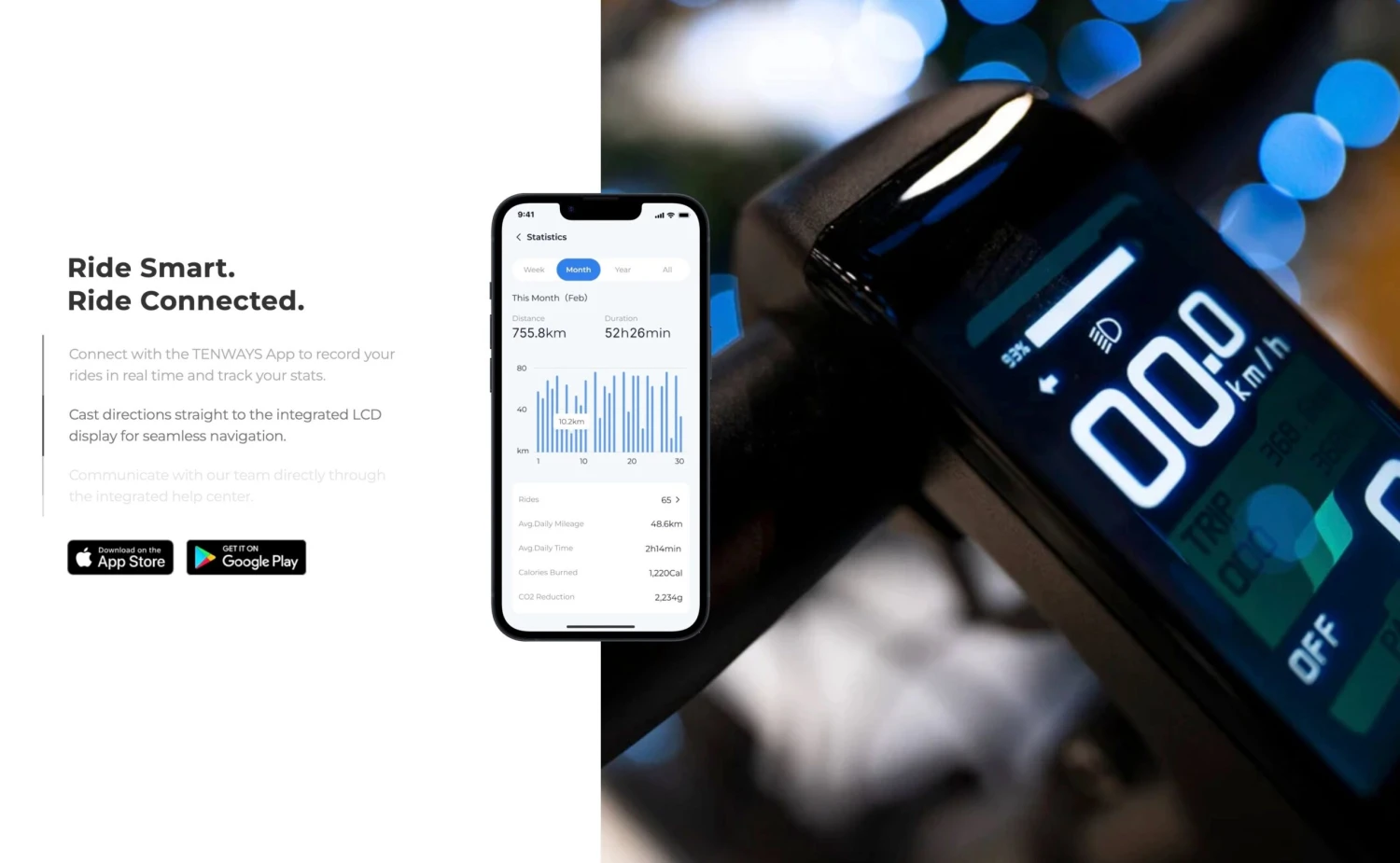 Seamless battery integration that is hard to notice from a distance. Up to 100 km range per charge. 374wh large capacity battery.