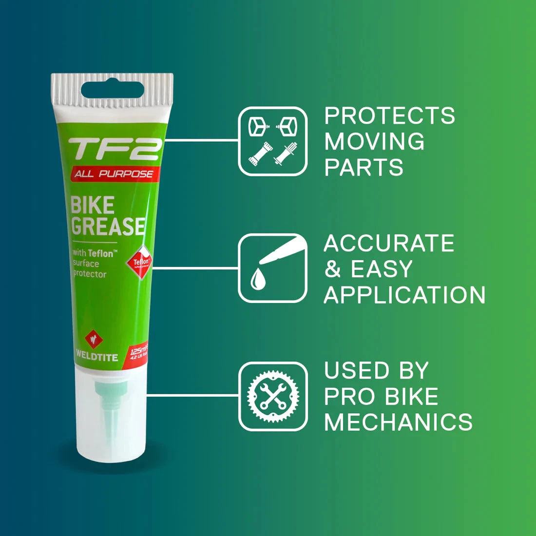✔ Designed to be used with the TF2 Grease Gun to ensure accurate and easy application to headsets, bottom brackets, hubs, pedals and suspension systems.